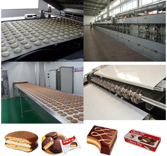 Pie cake production line: With eggs and flour as the main raw material, thick paste, after injection, baking, cooling, cake turn over and sandwich, made into delicious egg yolk pie, fashion, leisure, strawberry pie series of layer cake, favored by consumers. This production line is characterized by a high degree of automation, set light, electricity, gas, machine as a whole; besides feeding other processes are automated operations. This machine uses the essence of the foreign advanced technology, production of cake last for more than half a year. Pie cake stalls high taste, for young and old, has a huge consumer groups, production pie cake is the food manufacturers preferred projects, seize market, first will win. Production capacity: 8-9 tons/day Total installed power: 50 kw